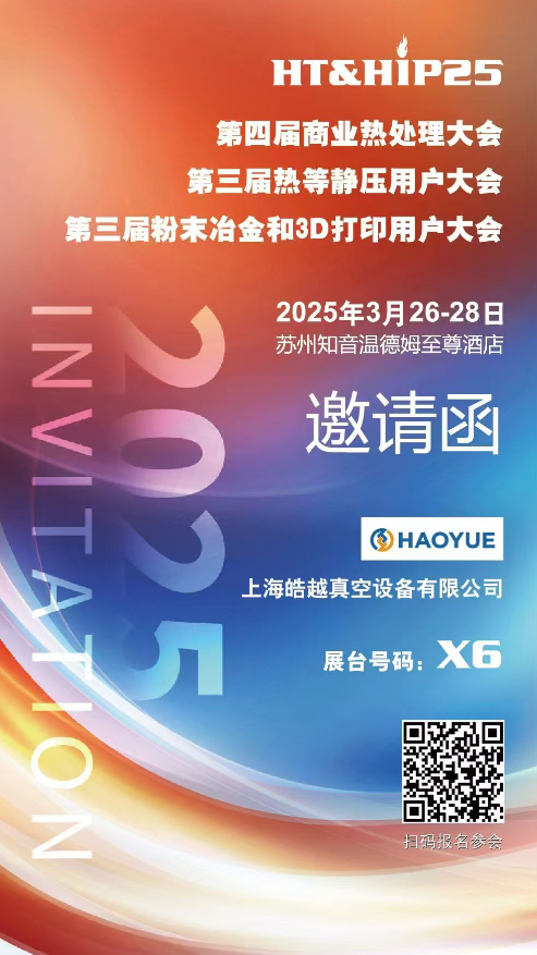 在科技飛速發(fā)展的當下,工業(yè)制造領域的每一次技術革新都備受矚目。作為真空高溫熱處理設備行業(yè)的企業(yè),皓越科技始終秉持著創(chuàng)新驅動、品質至上的理念,不斷推動行業(yè)的發(fā)展與進步。如今,備受期待的第四屆商業(yè)熱處理大會、第三屆熱等靜壓大會以及第三屆粉末冶金用戶大會即將盛大開幕,皓越科技也將盛裝出席,與來自世界各地的行業(yè)精英齊聚一堂,共襄盛舉。